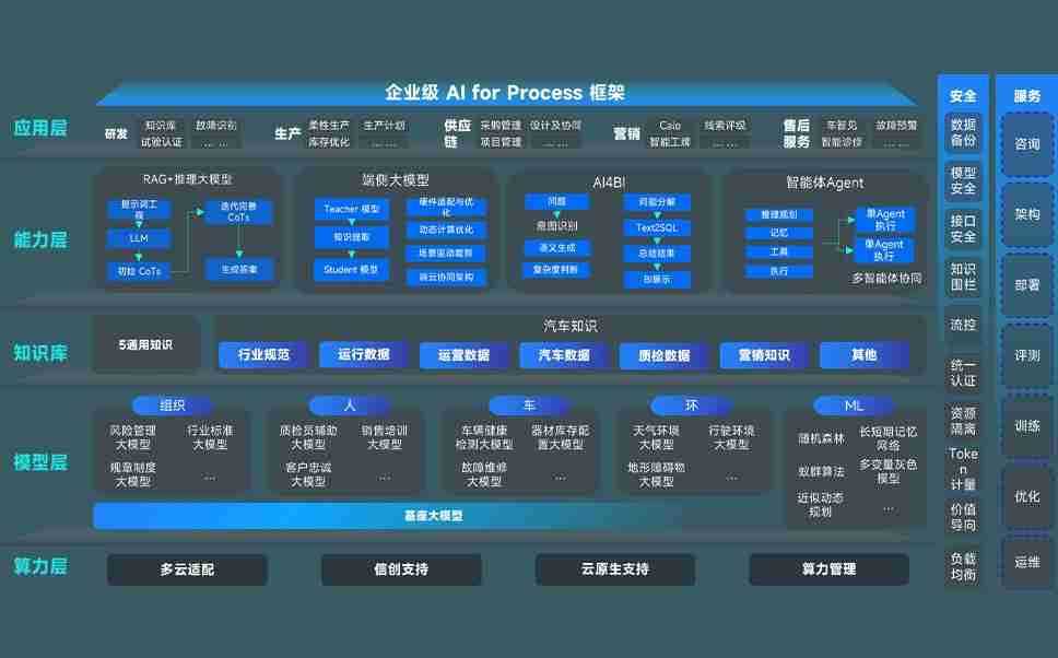 端到端的一站式AI工作空间深度融合了从企业战略规划到日常经营的全流程业务板块,,,,定向解决车企内部领域多、、、部门多、、链条长、、、、场景碎片化等难题,,,,支持车企快速构建以AI为核心的生产力写作体系,,,实现任务执行与AI能力的无缝集成与交互