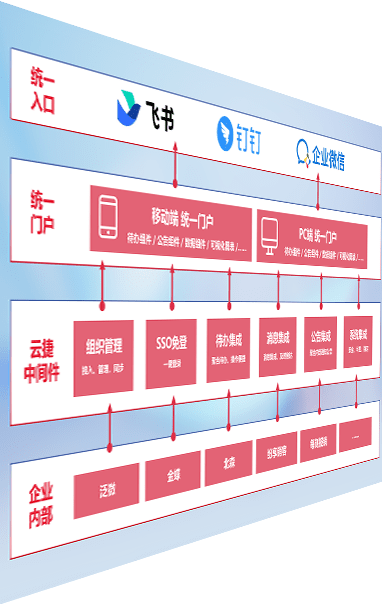 对协作平台提供支持服务,,,支持企业应用与协作平台对接,,包含组织同步、、、、消息集成、、待办集成等。。支持目前主流的协作平台:钉钉、、、企微和飞书。。